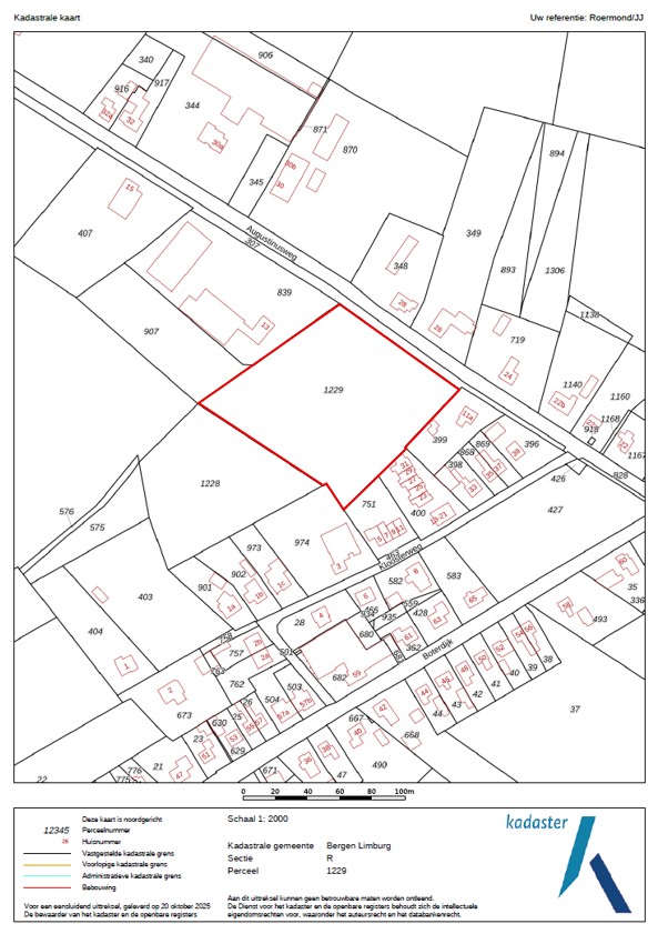 Gemeente Bergen Limburg, sectie R, nummer 1229, groot 01.01.46 ha.