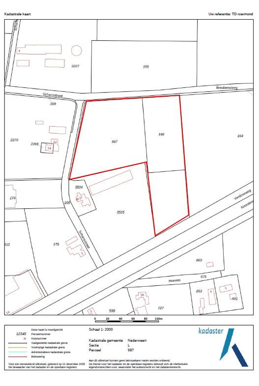 Het perceel van 02.39.70 ha is gelegen in het buitengebied van Nederweert en goed ontsloten middels een verharde weg welke aansluit op de Schansstraat en Breubensteeg alsook de Venloseweg ‘N275’. Hierdoor is het perceel uitstekend bereikbaar.