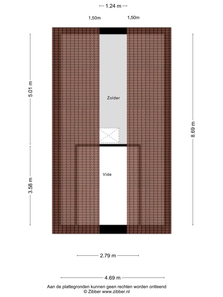 Vanuit de laatste slaapkamer is de zolder middels een loopdeur toegankelijk. Hier is tevens de cv-ketel gesitueerd. De ruimte is voorzien van een drietal dakramen waardoor deze eveneens als hobby- of werkruimte geschikt is. Middels de vaste trap keert u terug op de begane grond in de ruimte naast de entree.