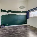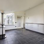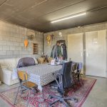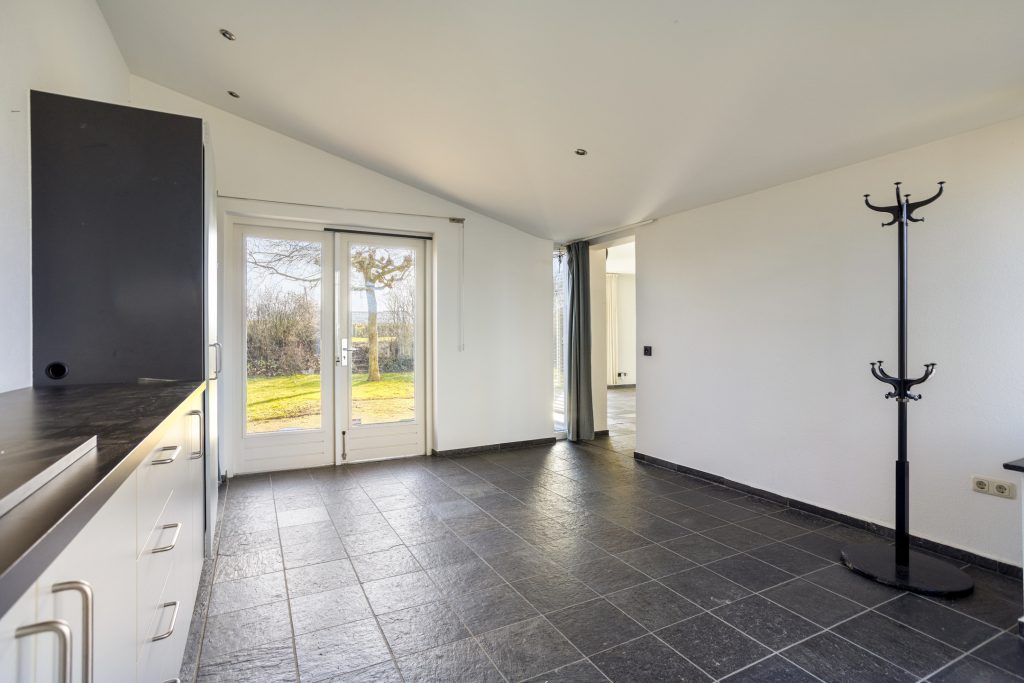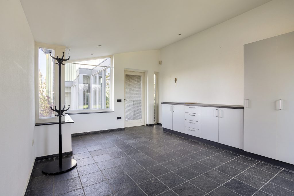 Aangrenzend aan de keuken bevindt zich een (kantoor)ruimte, die tevens toegang biedt tot de achterentree. Vanuit deze achterentree is er een overdekte verbinding naar de bedrijfsloods. De ruimte beschikt over grote raampartijen, waardoor een prettig natuurlijk licht binnenvalt. De afwerking bestaat uit dezelfde leistenen vloer en gestucte wanden.