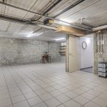 Via de hal zijn zowel de kelder als de garage toegankelijk. De kelderhal is afgewerkt met dezelfde leistenen vloer en strak gestucte wanden als op de begane grond. De L-vormige ruime garage is voorzien van een tegelvloer. De kelderwanden zijn opgetrokken uit schoonmetselwerk van betonstenen. De garage beschikt over een elektrische garagepoort en biedt ruimte aan de CV-ketel (Nefit Trendline uit ca. 2022), de toegang tot de kruipruimte en de verdeler van de vloerverwarming.