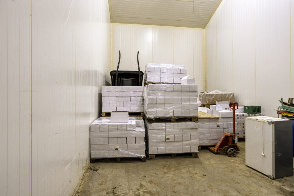 In de loods bevinden zich vijf ruime ULO-koelcellen, gebouwd middels sandwichpanelen van 130mm, elk met een afmeting van ca. 5,25 m breed, 8,75 m diep en 7 m hoog (ca. 320m³ inhoud), de besturing bestaat uit AT5 FC875-PC besturingscomputers. Boven de kantine bevindt zich een zolder waar de koelmotor is gesitueerd, evenals de elektrische boiler. De loods heeft een nokhoogte van ca. 9,5 m, waarbij de nok niet in het midden is gesitueerd. De spanten staan op 5 meter afstand van elkaar. De goothoogtes verschillen per zijde, de linkerzijde is ca. 4,5 m hoog en de rechterzijde ca. 6 m. De toegang van de loods is middels een loopdeur en een handmatige rolpoort met afmeting van ca. 5,40 m x 4,75 m.