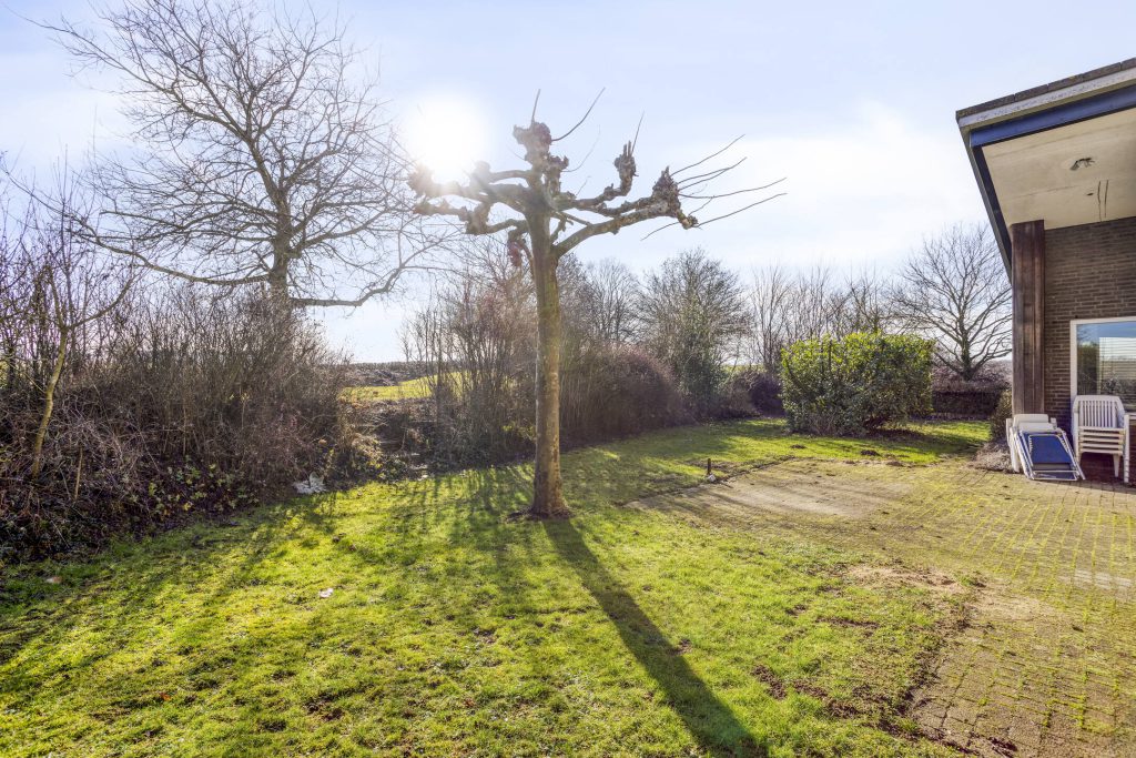 De woning wordt omgeven door een royale, natuurlijke tuin met diverse boomopstanden en een omheining van een natuurlijke haag. De tuin is rijk aangekleed met verschillende beplantingen van bloemen en planten, wat zorgt voor kleur en variatie gedurende het hele seizoen. Op het perceel bevindt zich tevens een weide met (voormalige) schuilstal, deze voorheen dienst deed voor het houden van bijvoorbeeld kleine gezelschapsdieren zoals pony’s, schapen of geiten. De tuin is speels vormgegeven met niveauverschillen, wat zorgt voor een levendige en karaktervolle buitenruimte. Rondom de woning liggen meerdere terrassen, perfect om tijdens voorjaars- en zomerdagen te genieten van de zon én het prachtige uitzicht over het omliggende heuvellandschap.