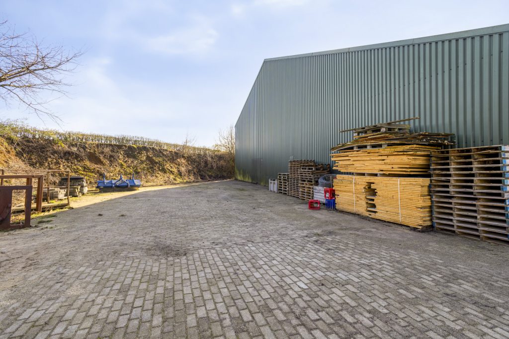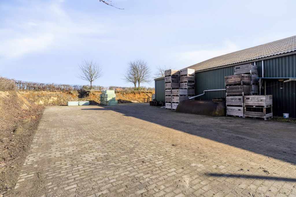 De loods is aan drie zijden vrijgelegen en daardoor uitstekend bereikbaar. Rondom de loods bevindt zich erfverharding van klinkers, terwijl aan de voorzijde korrelmixverharding is aangebracht. Het terrein is toegankelijk via twee opritten, waarvan de hoofdingang is voorzien van een toegangspoort die op afstand kan worden geopend.