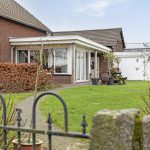 De verzorgde tuin is aangelegd met een gazon, borders met diverse beplanting en een grote siervijver. De woning beschikt bovendien over een ruime veranda. De tuin wordt omsloten door een laag sierhekwerk met deels een haag. Een mooi detail is de speelse muur en carport aan de voorzijde, uitgevoerd in sierkeien. Toegang tot de tuin verkrijg je de via de sierpoort onder de carport en een lage sierpoort aan de voorzijde. De tuin is voorzien van ondergrondse beregening en diverse stroompunten.