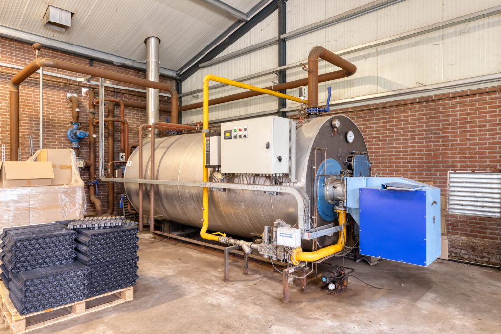 – Verwarmingsketel (gas en olie) met Vitotherm brander (2004) cap. 1.000 m.cal/h (er is echter geen gasaansluiting in de loods gesitueerd)