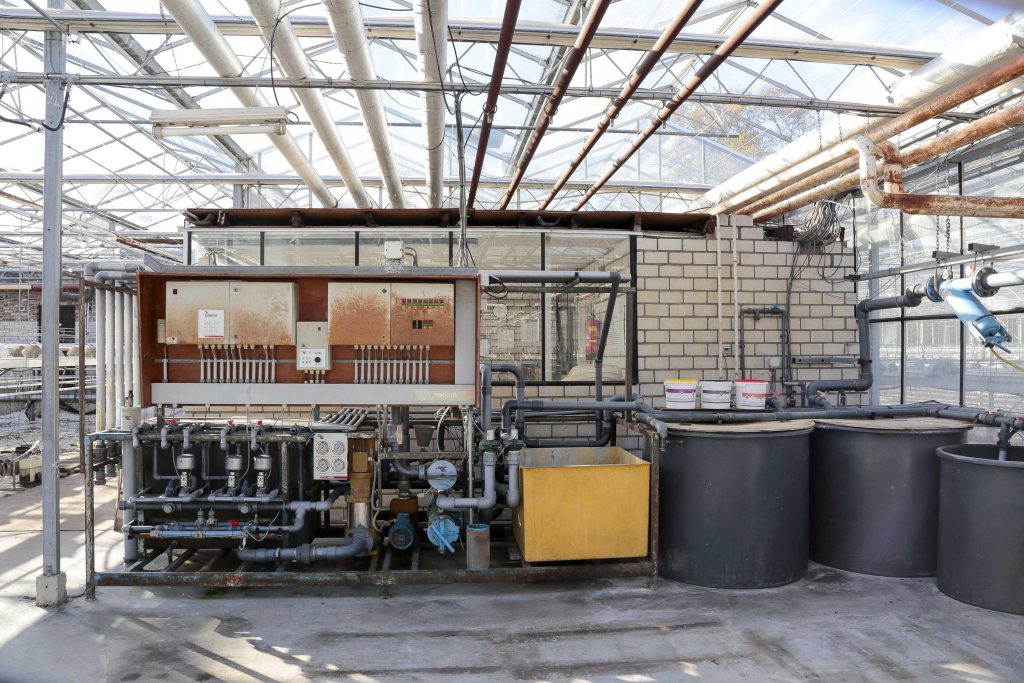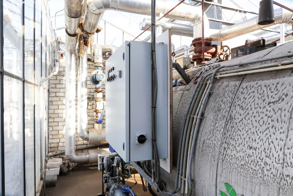D. Ketelhuis, substraatunit, gewasbeschermingsmiddelenkast, kantine, computerruimte met klimaatcomputer en internetaansluiting