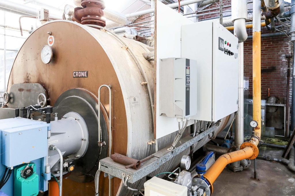 – Ketel van het merk Crone, type CM12 en bouwjaar 1989. Vlampijpen zijn vervangen in 2011.