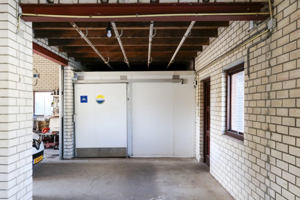 In de loods bevindt zich de koelcel en een handenwasgelegenheid, drinkwatervoorziening, aansluiting telefoon, afsluiter elektra en toilet