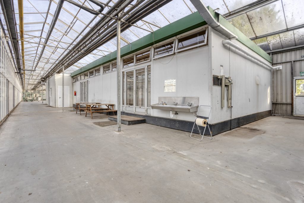 glastuinbouwlocatie gelegen. De locatie bestaat uit ca. 3,6 ha glasopstand met een corridor en technische ruimte als substraatruimte en watervoorzieningen. De corridor is ingericht als een ruime bedrijfsruimte, kantoor- en vergaderruimte, kantine en sanitaire voorzieningen. De bedrijfsruimte biedt volop mogelijkheden voor opslag van materialen en machines.