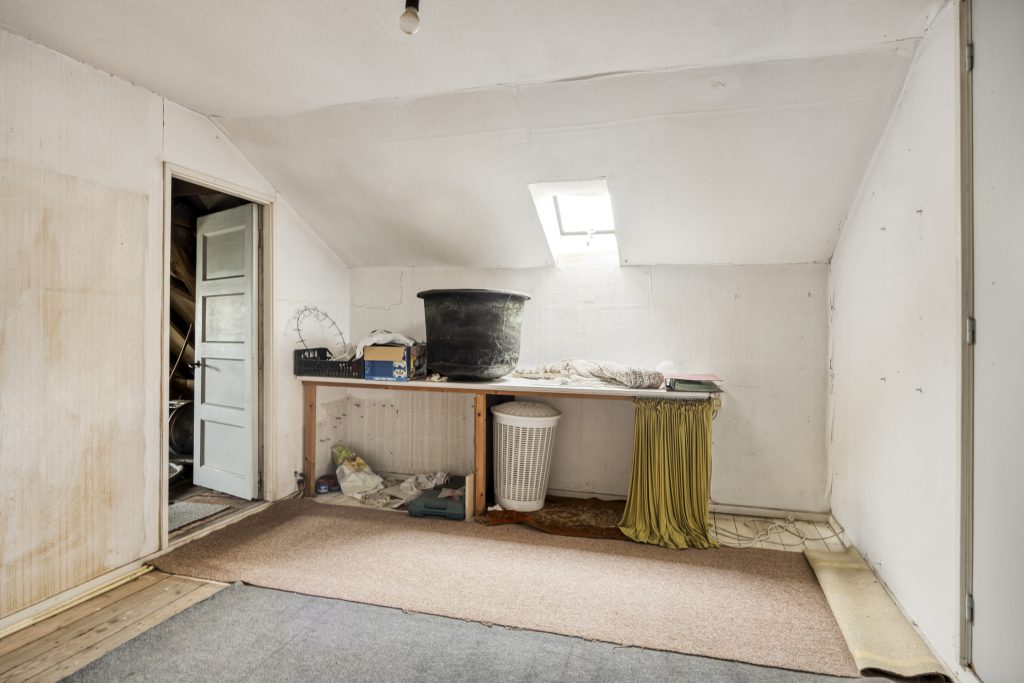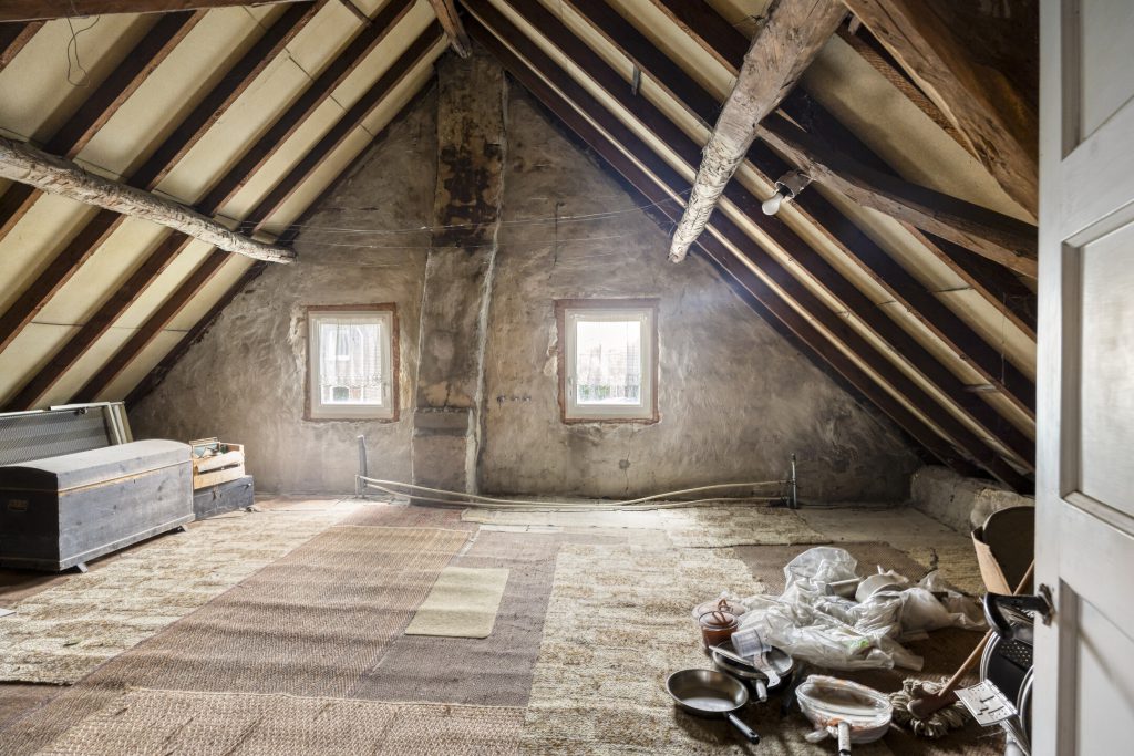 De verdieping van de woning is ingericht met twee slaapkamers en een zolder. De slaapkamer aan de voorzijde van de woning is afgewerkt met tapijt vloerbedekking en beschikt over een grote raampartij met houten kozijnen en dubbelglas. De kamer heeft een praktische muurkast onder het knieschot van het dak. De tweede slaapkamer heeft een dakraam en een houten vloer. Vanuit hier is de zolderkamer toegankelijk met twee houten kozijnen voorzien van draaikiepramen met dubbelglas. De zolder heeft een houtenvloer.