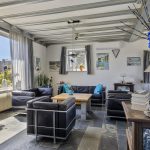 De woonkamer is ruim en licht, dankzij de grote raampartijen en de royale glaspui. De openslaande deuren creëren een naadloze verbinding met het zonneterras in de tuin, waardoor binnen en buiten mooi in elkaar overlopen.