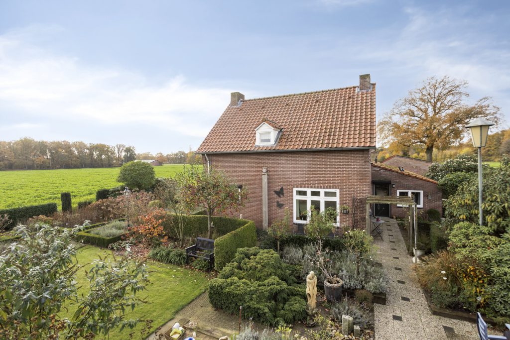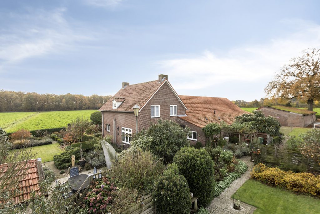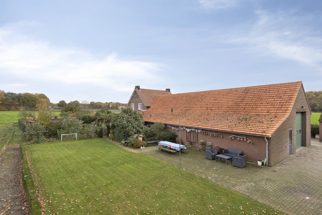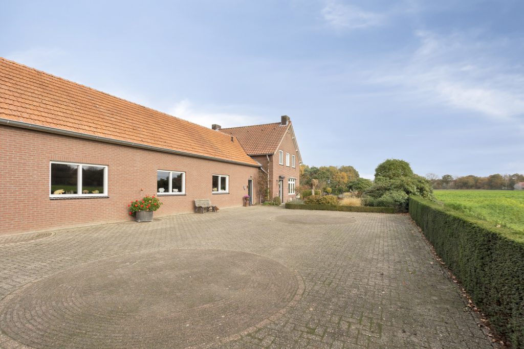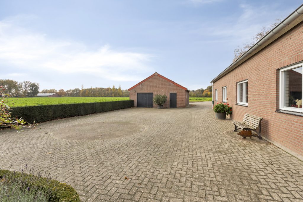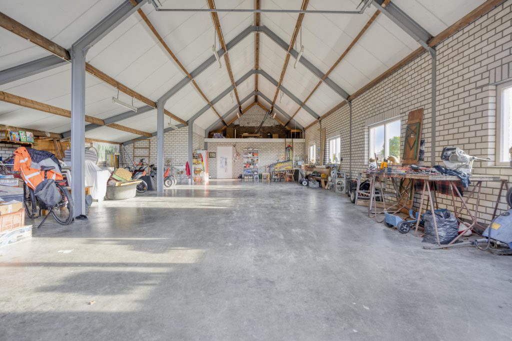 Aan de voorzijde is het erf volledig bestraat, wat zorgt voor een nette entree en ruime parkeergelegenheid voor meerdere voertuigen. De situering van de bijgebouwen maakt het perceel praktisch in gebruik en geeft veel mogelijkheden voor hobby’s, opslag of kleinschalige activiteiten.