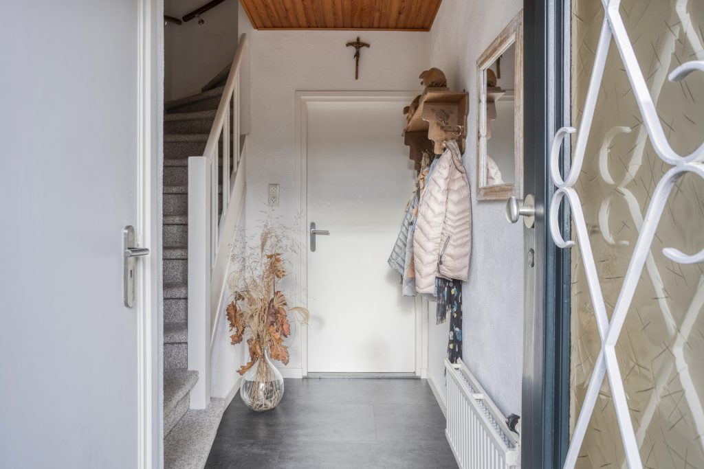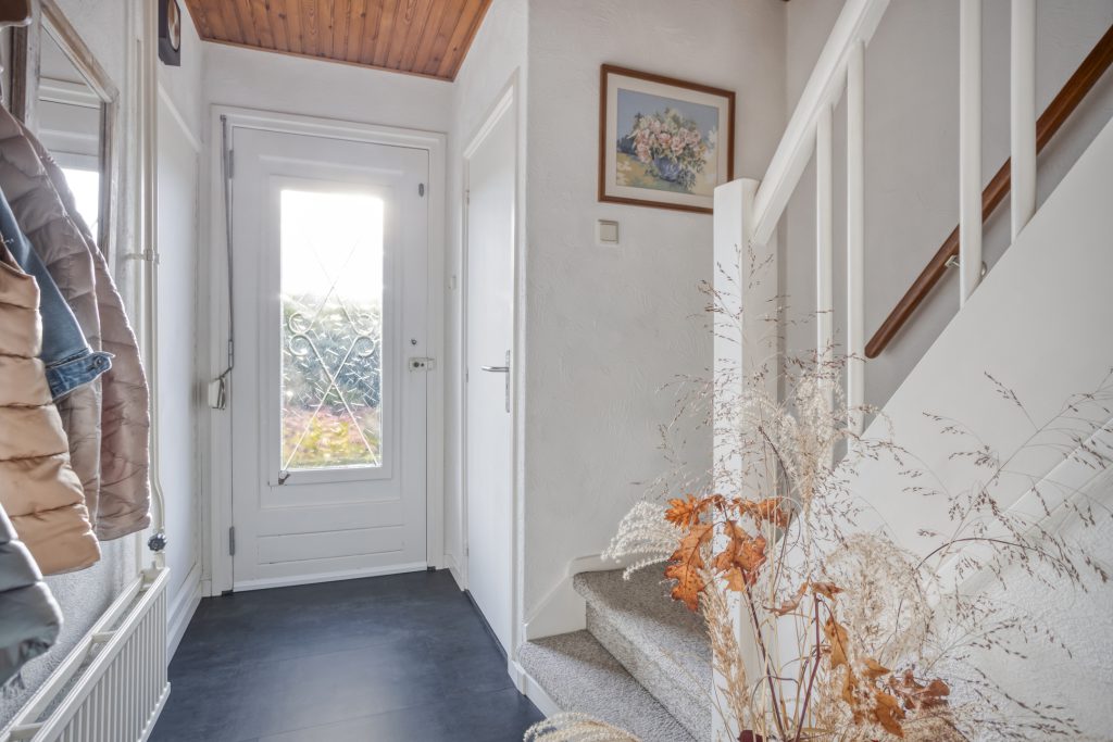 Via de voordeur komt u in de hal met aan de rechterzijde de meterkast (met krachtstroom) en links een praktische voorraadkast. Vanuit de hal is de trap naar de 1e verdieping bereikbaar en de doorgang naar de keuken.