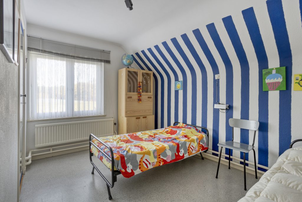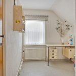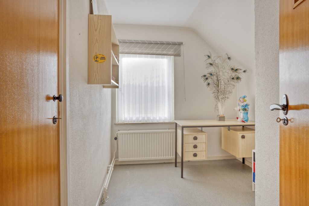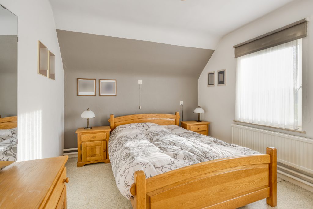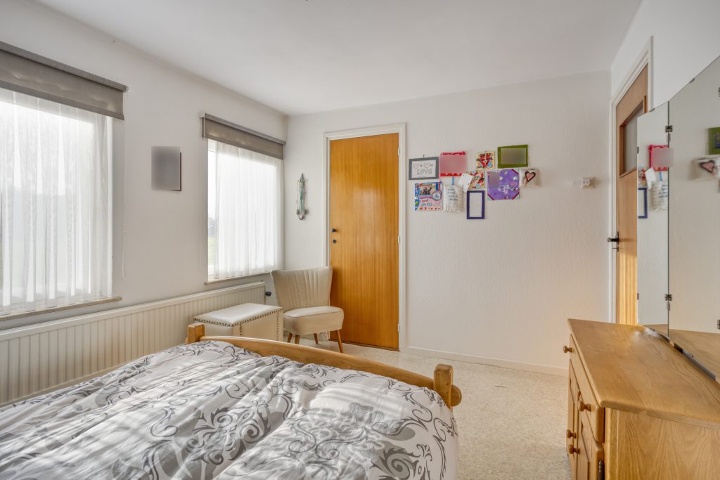 De eerste verdieping telt maar liefst vier slaapkamers, elk voorzien van een muurkast, radiator en vinylvloer. Twee kamers liggen aan de voorzijde van de woning en twee aan de achterzijde. Vanaf alle kamers is er fraai uitzicht over de landerijen.