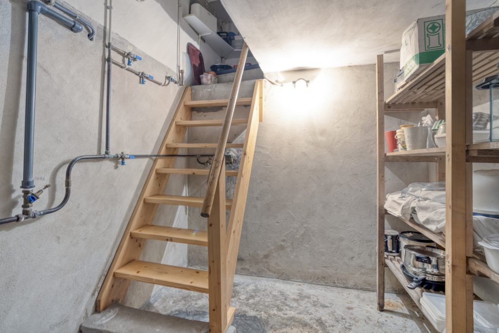 De trap is afgewerkt met vloerbedekking; de wanden zijn voorzien van granol stucwerk. Boven de eerste verdieping bevindt zich een bergzolder, welke bereikbaar is via een vlizotrap.