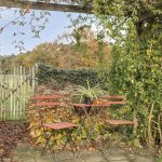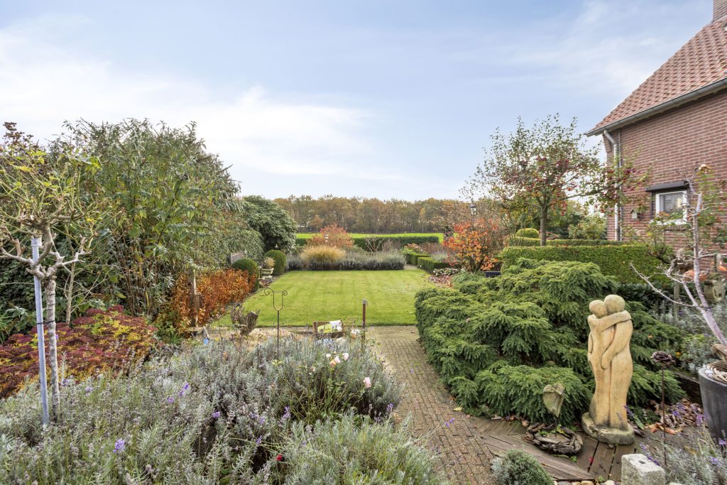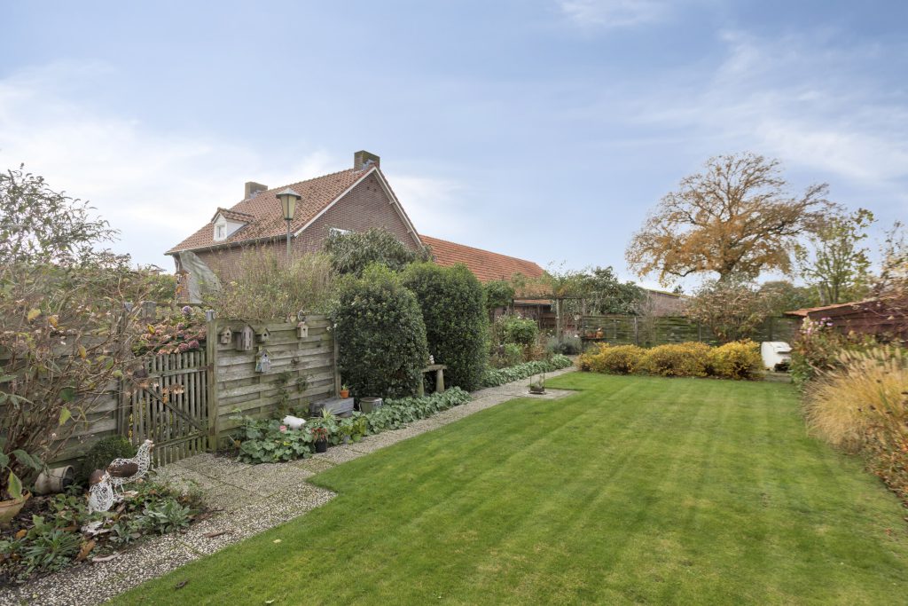 De tuin rondom de woning is verzorgd aangelegd met verschillende terrassen, groenperkjes en grasveldjes, waardoor er altijd een plek is om van de zon of schaduw te genieten. De uitstraling is gemoedelijk en landelijk. Er staat een tuinhuisje voorzien van electriciteit.